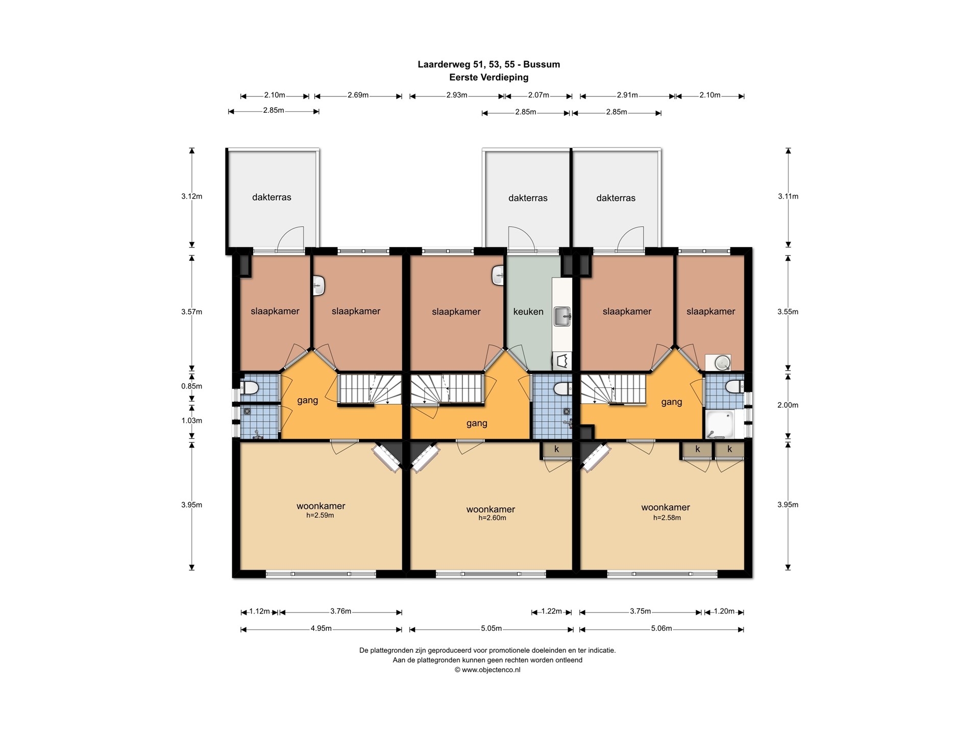 De Laarderweg 51 en 55 zijn beide 3-laags woningen met een entree aan de achterzijde van het pand. Ze beschikken op de begane grond over een tuintje, keuken, eetkamer en separaat toilet. De eerste verdieping is voorzien van een woonkamer aan de voorzijde, twee slaapkamers aan de achterzijde, een badkamer en een terrasje. Op de tweede verdieping zijn eveneens twee slaapkamers gelegen.