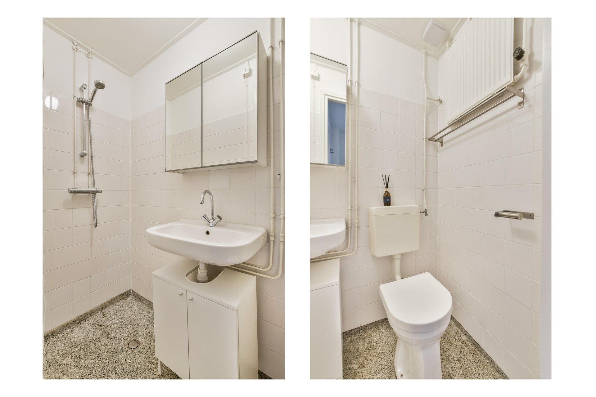 Aan de voorzijde vind je twee goed ingedeelde slaapkamers, waarvan één prima geschikt is als thuiskantoor, kinder- of logeerkamer. De centrale badkamer heeft een praktische indeling met douche, toilet en wastafel.