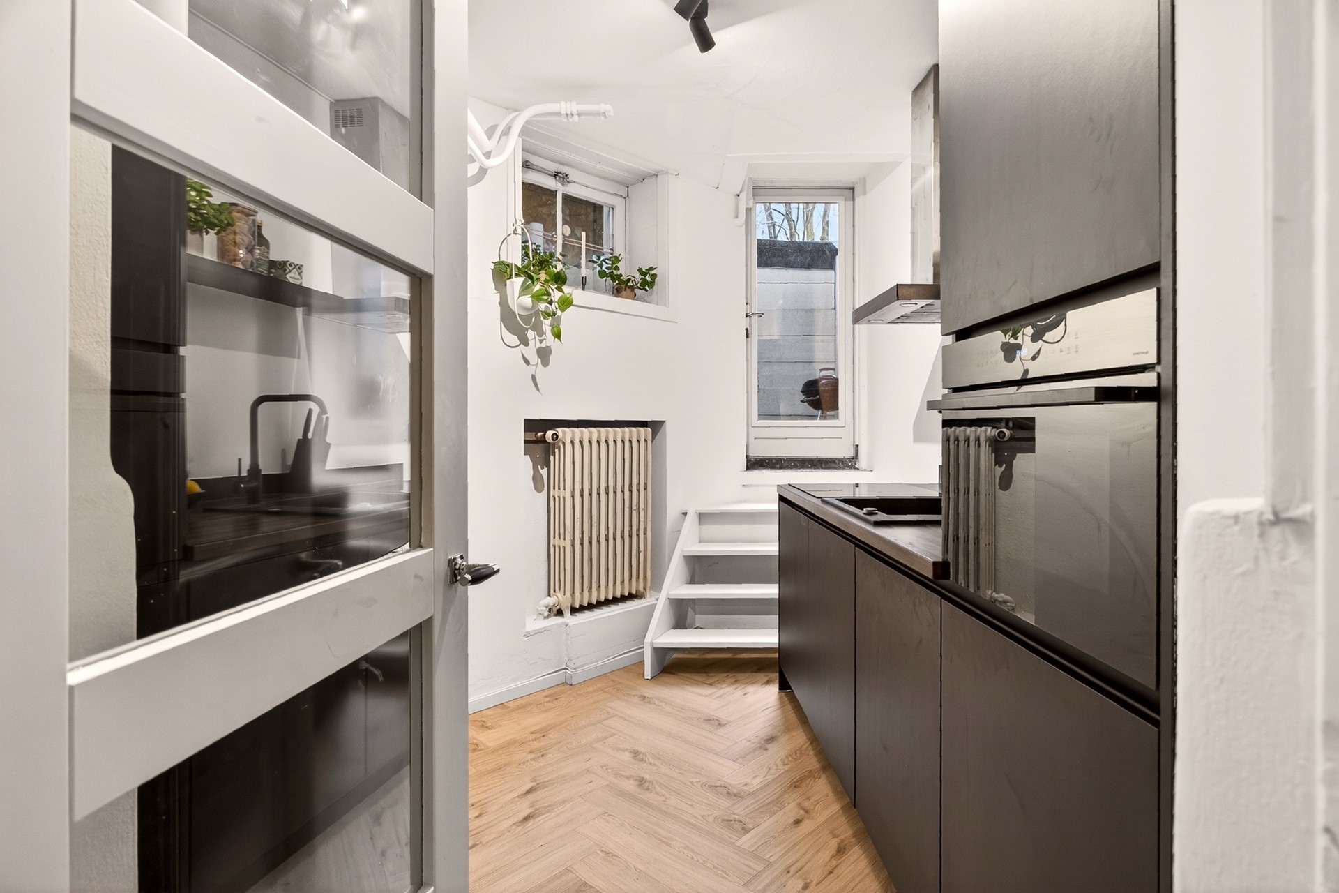 At the rear of this level, there is a second fully equipped kitchen with built-in appliances. From this kitchen, you have access to the rear garden.